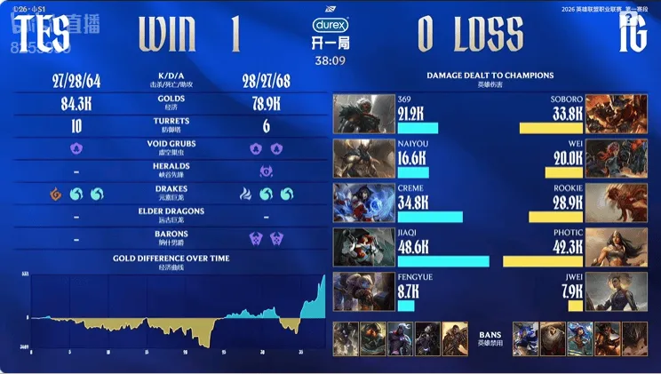 虎扑01月21日讯 TES蓝色方,IG红色方